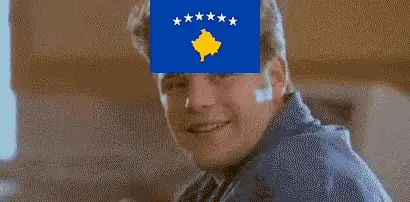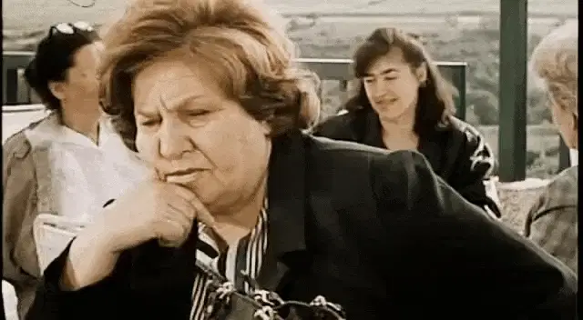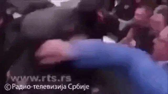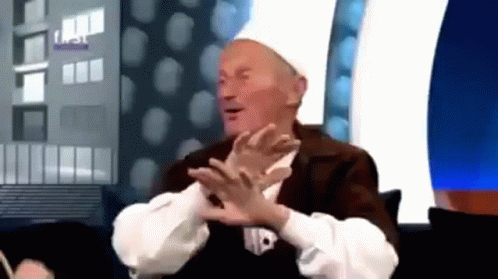 An older man in a traditional white qeleshe hat passionately gestures while speaking on a TV show.