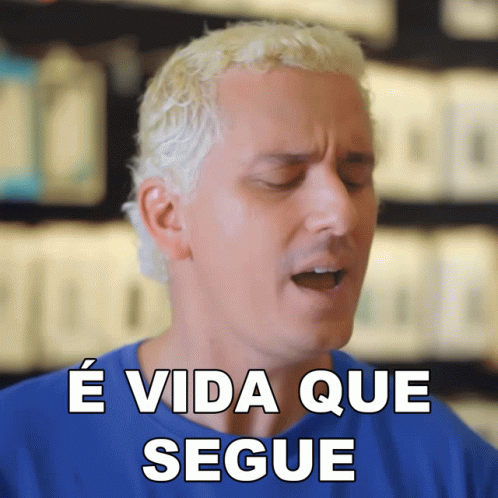 Rafael Portugal delivers the iconic phrase 'É Vida Que Segue' (Life Goes On) with a thoughtful expression.