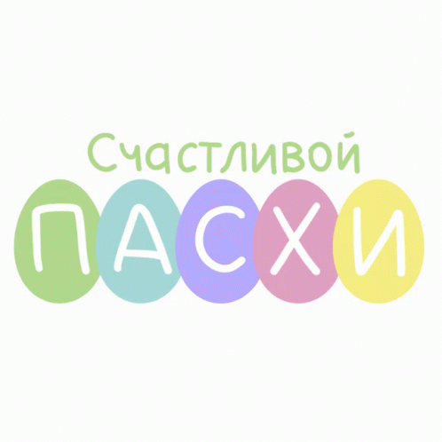 Colorful Easter eggs with the Russian words 'Счастливой Пасхи' (Happy Easter) written on them.