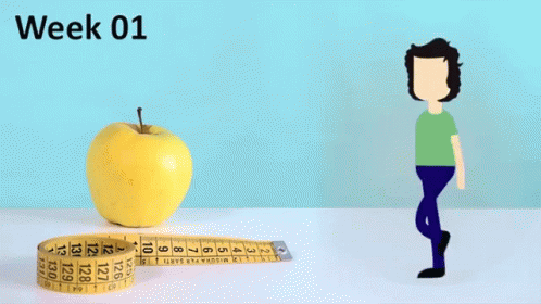 Animated man walking with instructions for an easy to moderate pace in Week 01 of a healthy lifestyle.