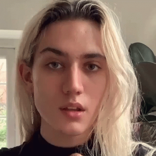 George Gorg, a nonbinary individual, enjoying a delicious almond croissant, taking a big bite.