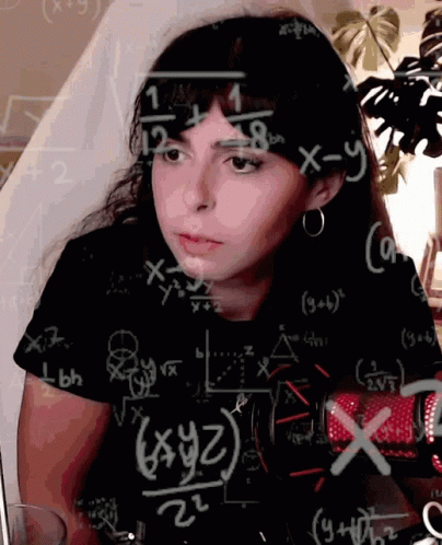 Ece Co (Eceçokyüce) deep in thought, surrounded by mathematical equations and diagrams.