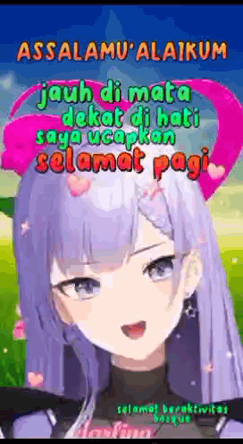 Echi Elaine Celestia, a purple-haired VTuber, wishes a good morning with a heartfelt message.