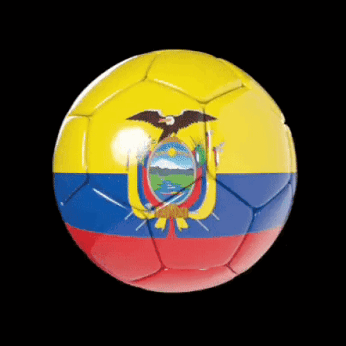 A 3D rendered soccer ball featuring the vibrant flag of Ecuador, slowly rotating.