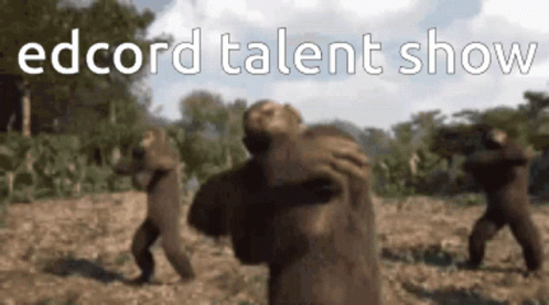 Edwin presents the Edcord Talent Show featuring a group of monkeys performing a synchronized dance.