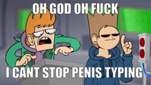 Eddsworld characters Matt and Tom reacting to a 'can't stop penis typing' meme, related to 'Taco Sex'.