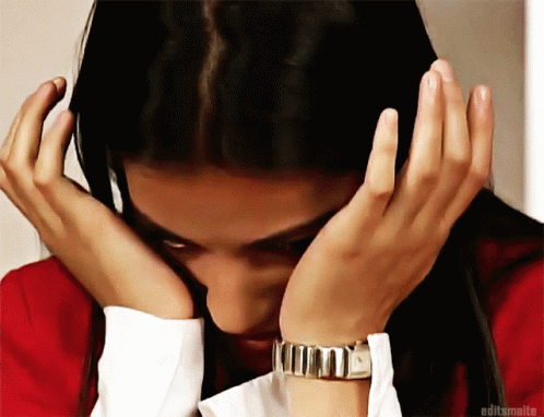 Maite Perroni, known as Lupita Fernandez, looks emotional, covering her face with her hands.