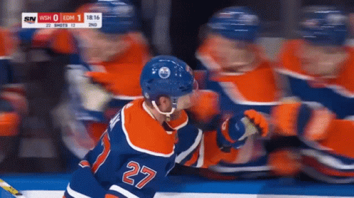 Edmonton Oilers player Brett Kulak on the ice during an NHL game, wearing jersey number 27.