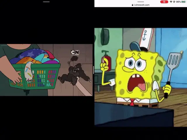 EEE Muffin, a blueberry muffin character, gets angry and grabs EEE Clay, an orange blob character.