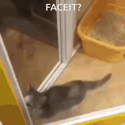 A small cat tries to get attention, with the text 'FACEIT?' displayed on screen.