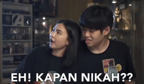 Chandra Liow and a woman react with laughter to the common Indonesian question 'Eh! Kapan Nikah??' (When will you marry?).