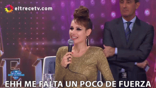 Pampita speaks into a microphone on a TV show set, expressing a lack of strength, with 'eltrecetv.com' visible.