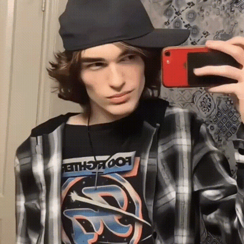 Ehren Craigthecrow takes a mirror selfie, wearing a black hat and plaid shirt.