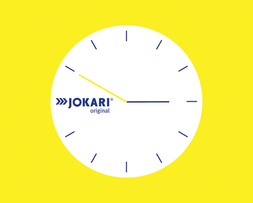 Jokari clock hands move back one hour, symbolizing a time change with the '-1' indicator.