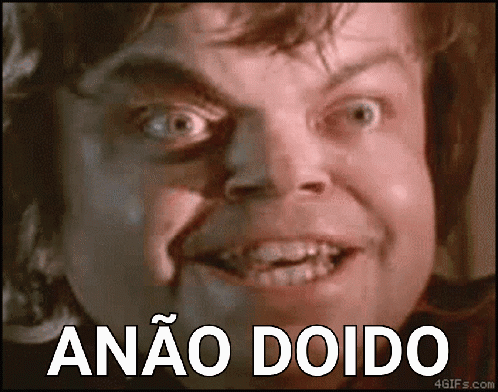 Close-up of a man's face with wide eyes and a grin, with the Portuguese text 'ANÃO DOIDO' (Crazy Dwarf) displayed.