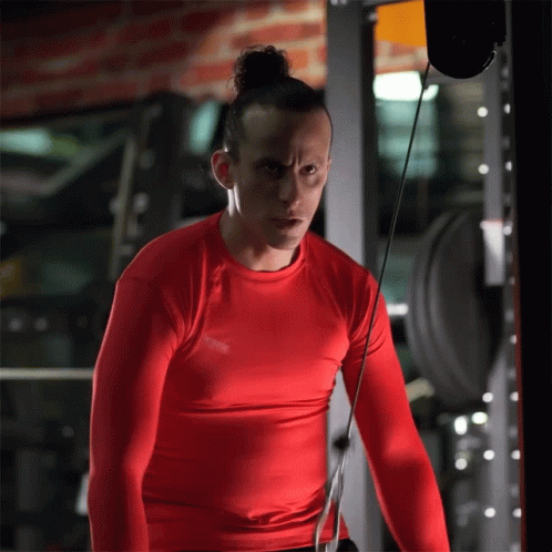 A man with a man bun performs an intense cable exercise in the gym, featured by Enchufe Tv.