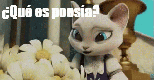 El Gato Con Botas presents a bouquet of flowers to a female cat, expressing love with a poetic phrase.