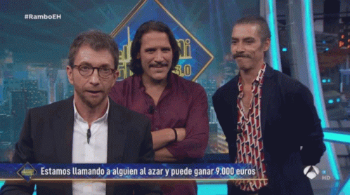 Oscar Jaenada and Sergio Peris Mencheta celebrate on El Hormiguero as someone is called to win 9,000 euros.