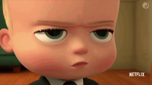 El Jefe (Boss Baby) looks skeptical and incredulous, wearing a suit and tie with a Netflix logo in the background.