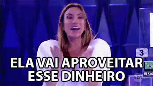 Patricia Abravanel reacts excitedly on the game show 'Topa Ou Nao Topa', exclaiming about money.