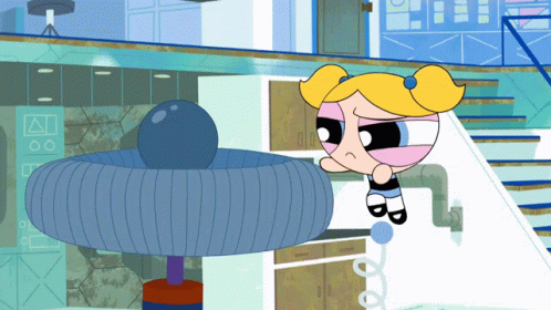 Burbuja de Las Chicas Superpoderosas se electrocuta accidentalmente con una máquina, mientras Bombon observa.