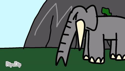 Cartoon elephant stands in front of a mountain, created with Flipaclip.