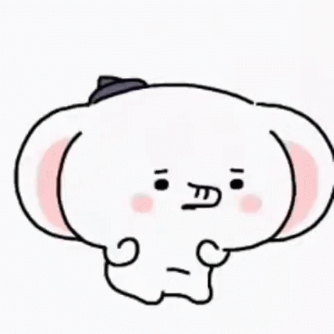 Cute cartoon elephant character Dongwoon with a hat, showing various happy and playful expressions.