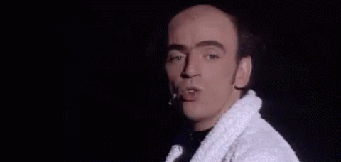 Elie Kakou performs on stage, wearing a white robe and smoking a cigarette.