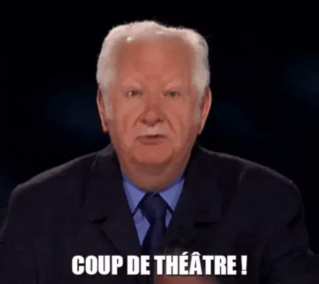 Élie Semoun and Frank Dubosc show exaggerated, shocked reactions in a comedic sketch.