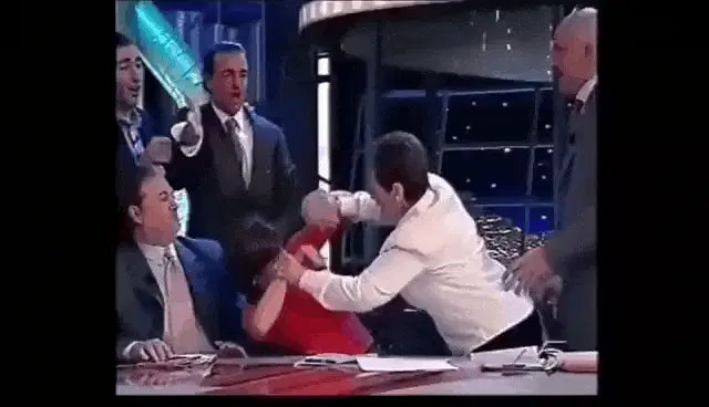Elio Proda in a heated exchange with another man, gesturing emphatically and shouting.