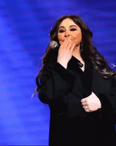 Lebanese singer Elissa performing live on stage, holding a microphone to her mouth.