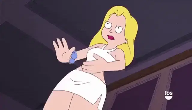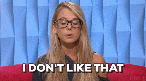 Elissa Reilly, a blonde woman wearing glasses, sits on a pink couch and expresses her dislike, saying 'I don't like that'.