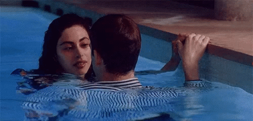 Guzman and Nadia share an intense look in the pool, a moment from Elite Netflix.