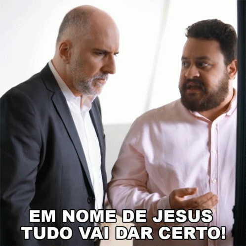 Estevam Nabote and Antonio Tabet in a sketch, declaring "In the name of Jesus, everything will be alright!".