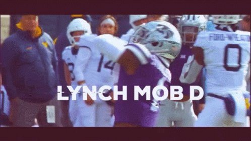 Kansas State Wildcats' Lynch Mob D, featuring Reggie Stubblefield making a heart gesture on the football field.