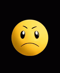A classic yellow angry face emoji with furrowed brows and a downturned mouth on a black background.