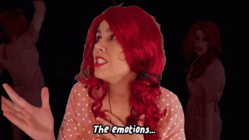 Twizzfizz Bethany, a woman with red hair, expresses being overwhelmed by emotions, exclaiming "They're everywhere!".