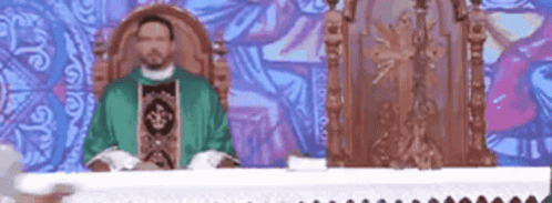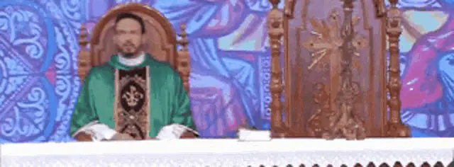 Padre Marcelo Rossi is unexpectedly pushed while sitting at a table.