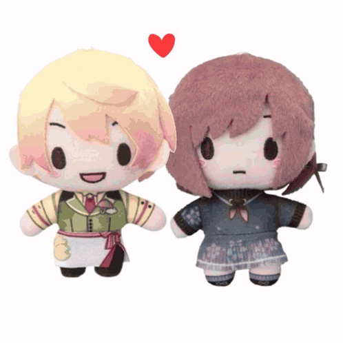 a boy and a girl are standing next to each other with a red heart between them