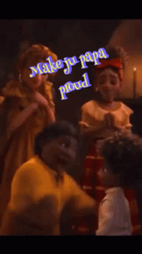Antonio from Encanto with his father, Agustín, featuring the text 'Make your papa proud'.