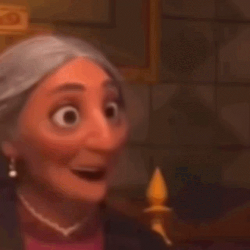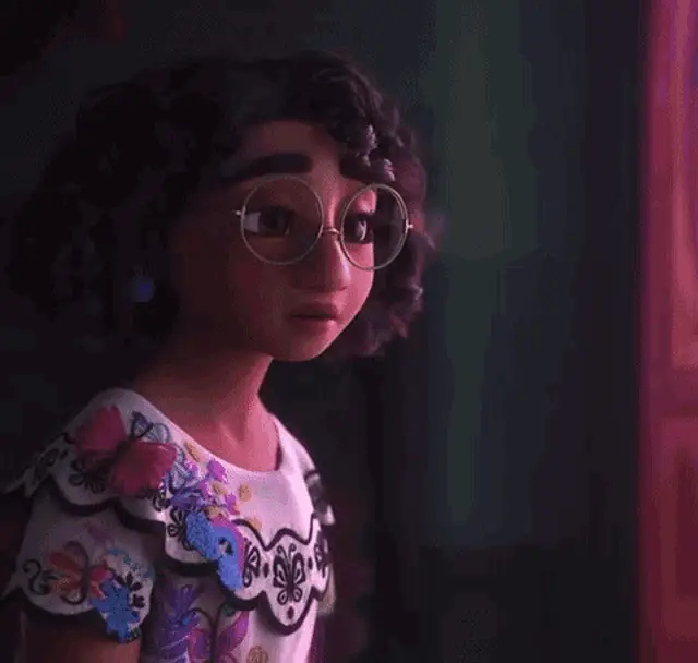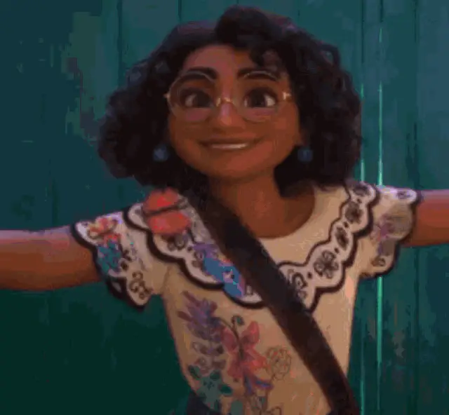 Mirabel from Encanto with a surprised expression, featuring big eyes and a close-up of her face.