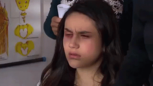 A young girl from La Rosa De Guadalupe is visibly upset with a swollen, discolored eye.
