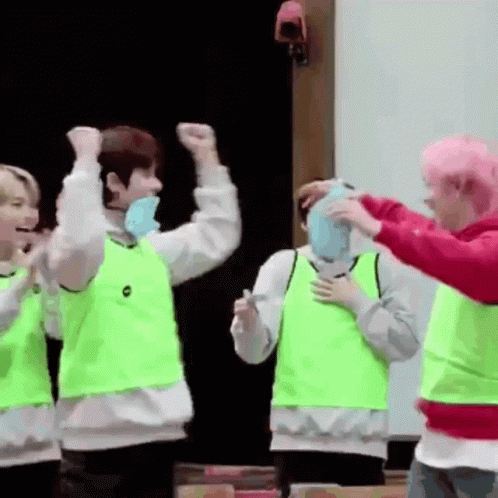 Enhypen's Heeseung and TXT's Yeonjun, known as Heehoonz, engage in a playful game, wearing green vests.