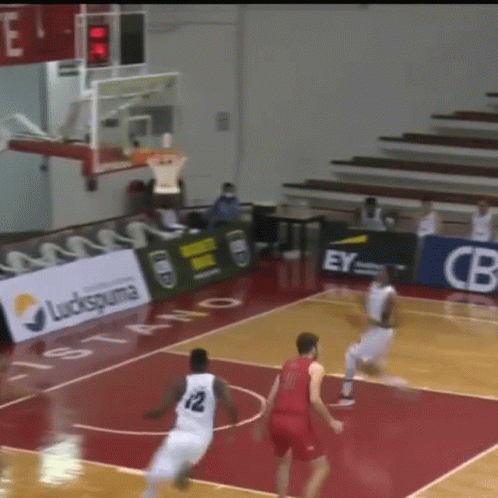 A basketball player executes a powerful and perfect dunk during a Novo Basquete Brasil game.