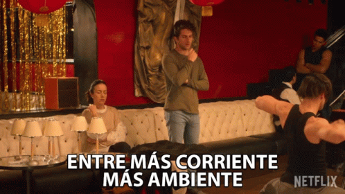 Dario Yazbek Bernal and Julian De La Mora in a scene from La Casa De Las Flores, featuring 'Entre Más Corriente Más Ambiente'.
