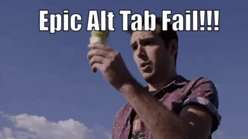 A man experiences an 'Epic Alt Tab Fail' as he drops his ice cream, perfectly timed with the meme.
