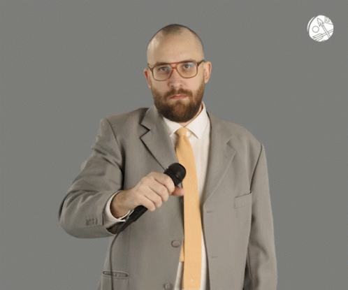 Epic Tax Guy from Verohallinto performs a mic drop, confidently concluding a statement.