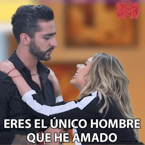 Karime Pindter and Luis Caballero embrace, with the text "You are the only man I have loved" displayed.