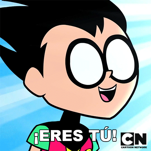 Robin from Teen Titans Go! reacts with an excited expression, exclaiming "¡Eres Tú!" (It's You!) in a Cartoon Network clip.