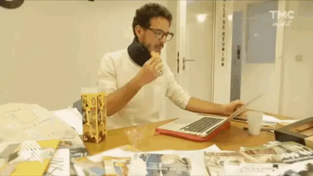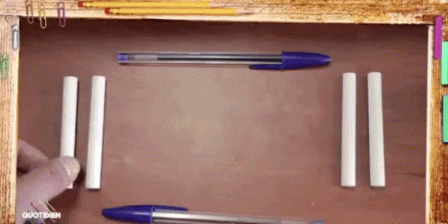 Eric Metzger from Quotidien demonstrates a setup with chalk, pens, and other school supplies.